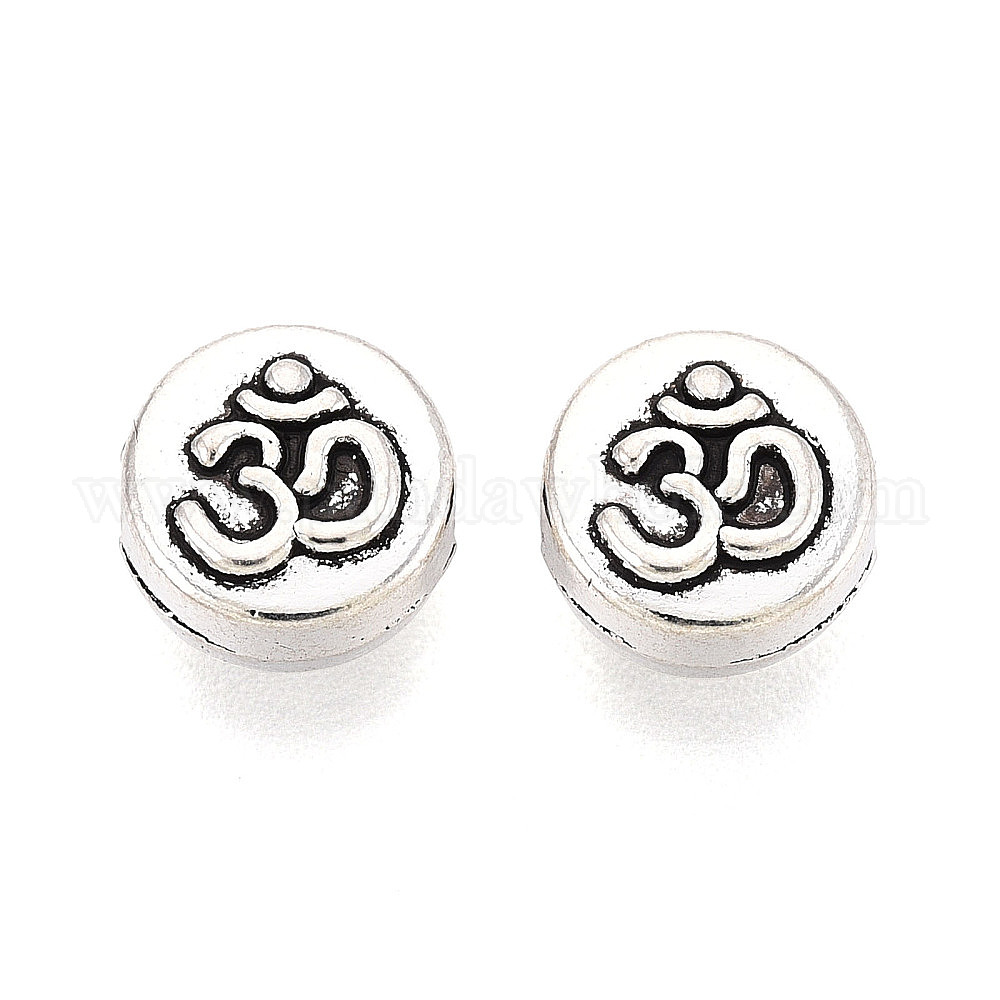 Сплавочные овальные бусины тибетского стиля , плоские круглые с Ом / АУМ