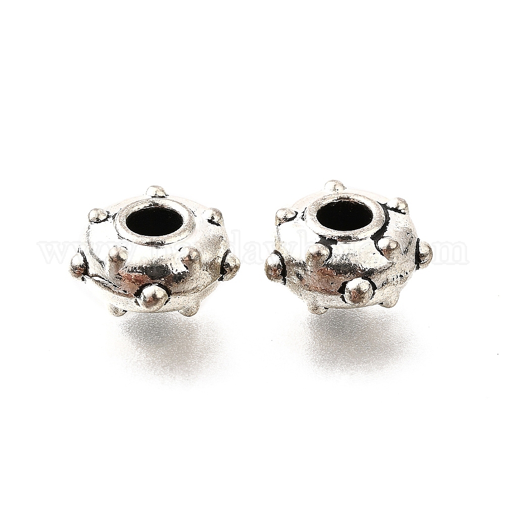 • Античное Серебро Сплавочные овальные бусины тибетского стиля , без кадмия и без свинца, плоско-круглые, античное серебро, 11x5.5 мм, отверстие : 3 мм