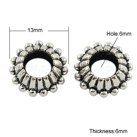 • Античное Серебро Сплавочные овальные бусины тибетского стиля , без кадмия и без свинца, рондель, античное серебро, 13x6 мм, отверстие : 6 мм