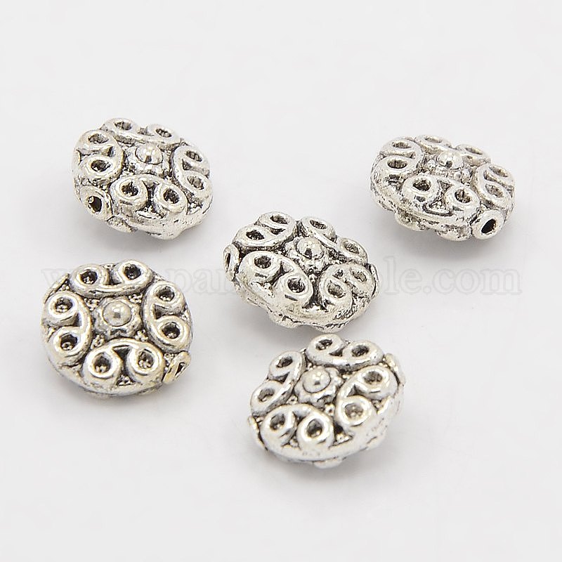 • Античное Серебро Сплавочные овальные бусины тибетского стиля , без кадмия и без свинца, плоско-круглые, античное серебро, 11x10x5 мм, отверстие : 1 мм