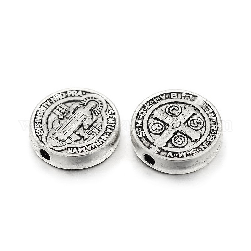 Плоско-круглые бусины из сплава тибетского стиля , с Иисусом и латинского креста, на Пасху, без свинца и без кадмия