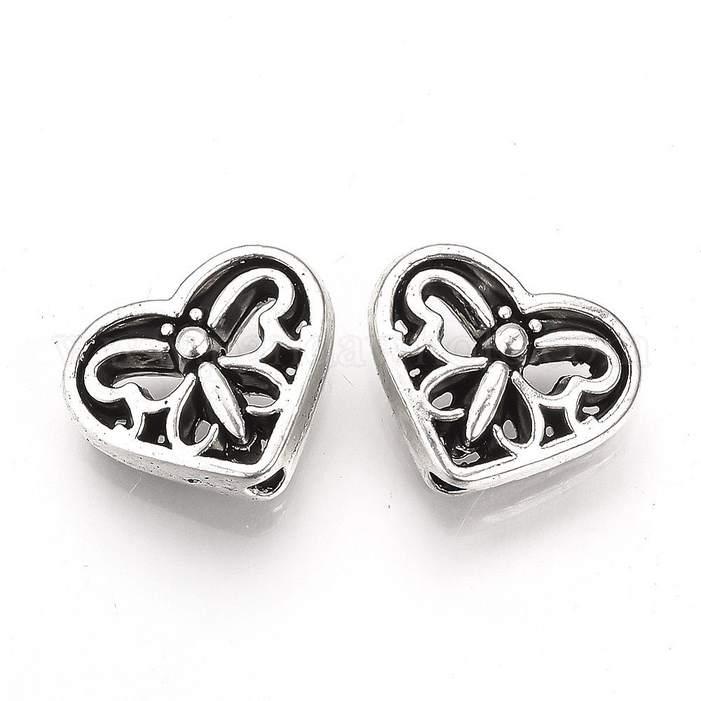 Сплавочные овальные бусины тибетского стиля , сердце с бабочкой, без кадмия и без свинца