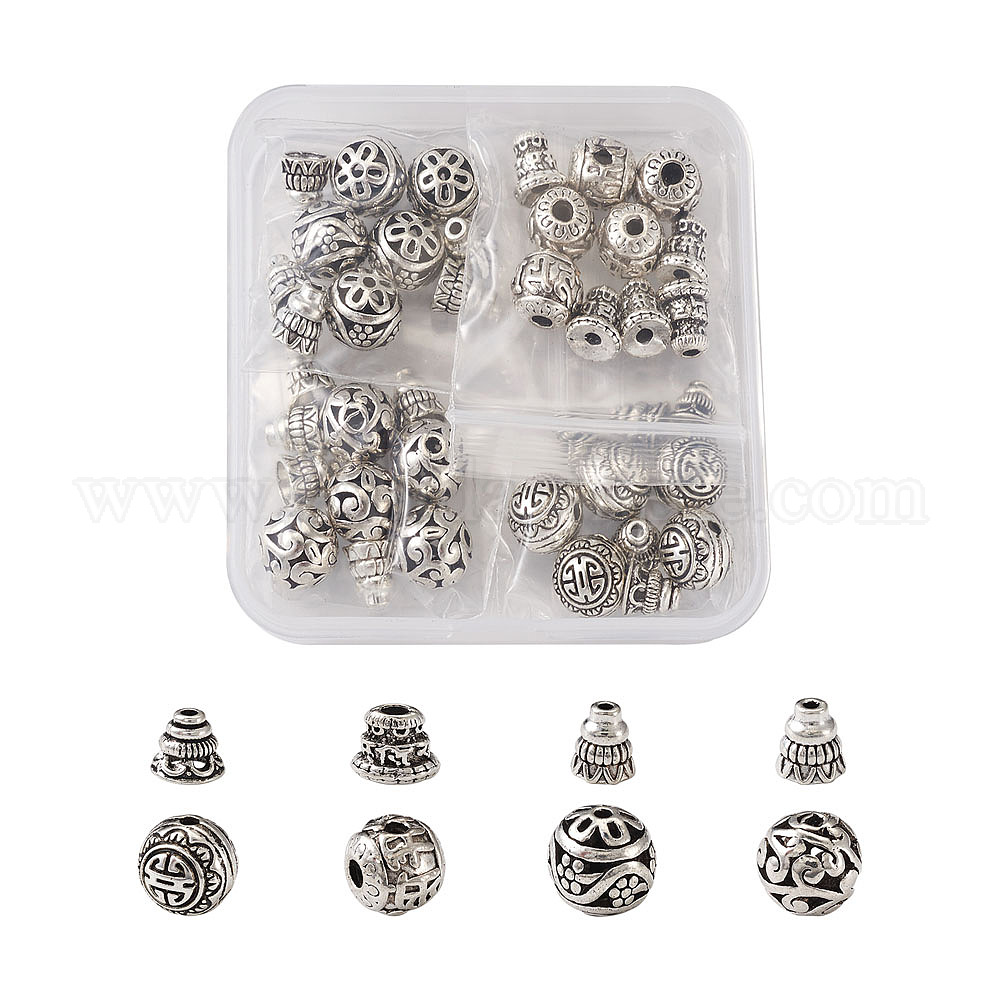 Наборы шариков гуру сплава тибетского стиля, T-просверленные бусы, 3 круглая бусина