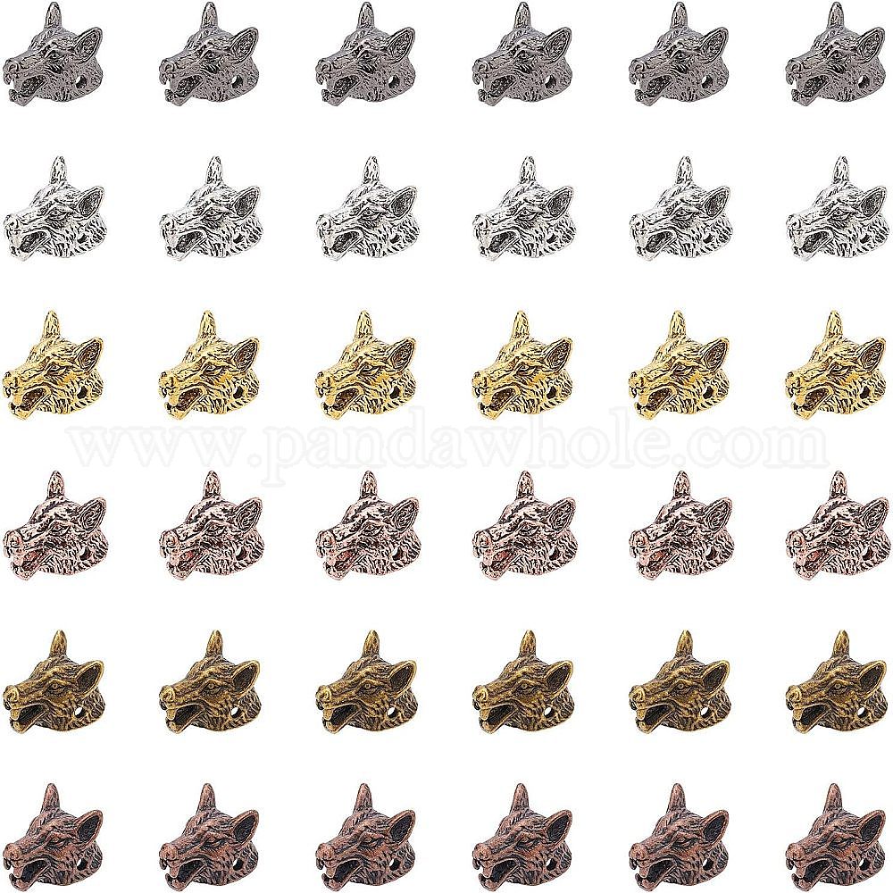 Сплавочные овальные бусины тибетского стиля , волк