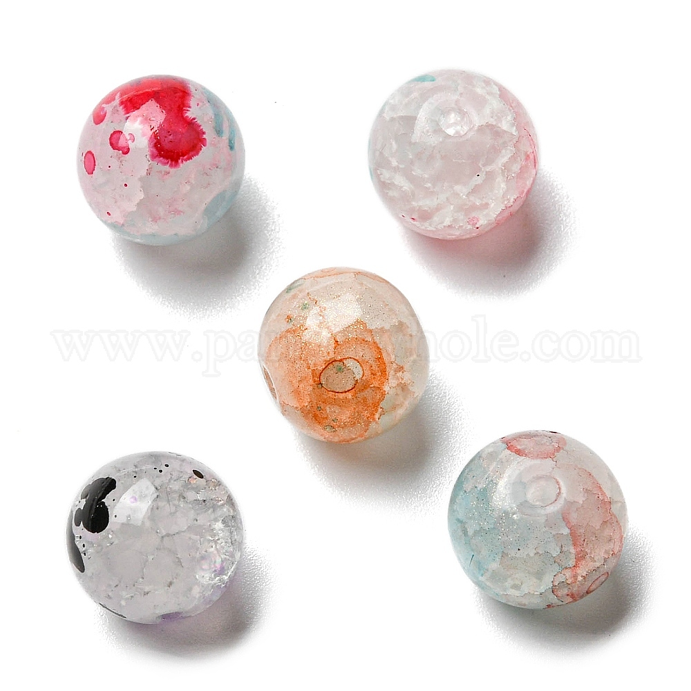 • Фиолетовый Прозрачные стеклянные бусмины кракле, имитация сломанного нефрита, круглые, фиолетовые, 10x9.5 мм, отверстие : 1.8 мм, около 10 шт / упаковка