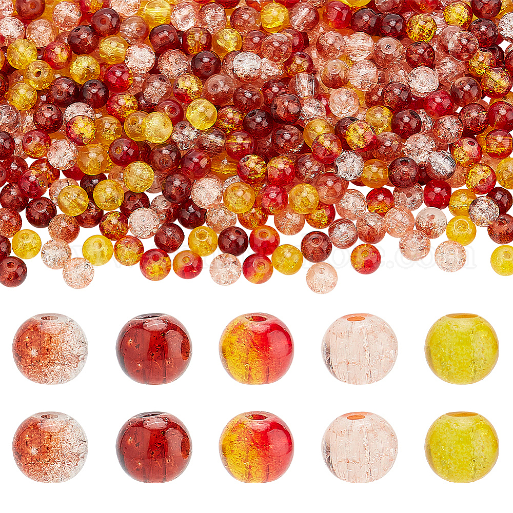 500 шт. 5 цвета прозрачные стеклянные бусины с эффектом кракле, окрашенные распылением, круглые
