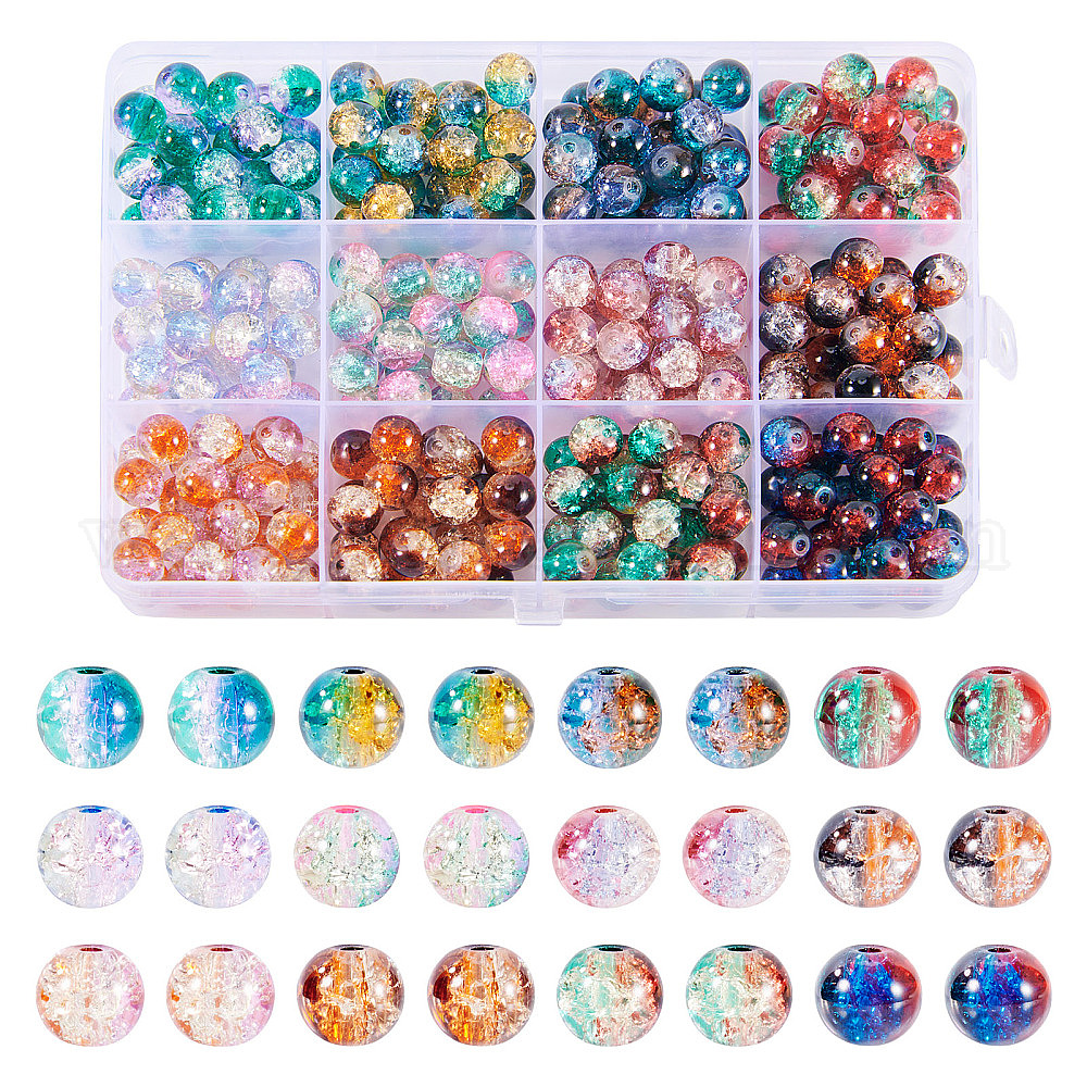 12 цветные стеклянные бусины с трещинками, круглые, два тона
