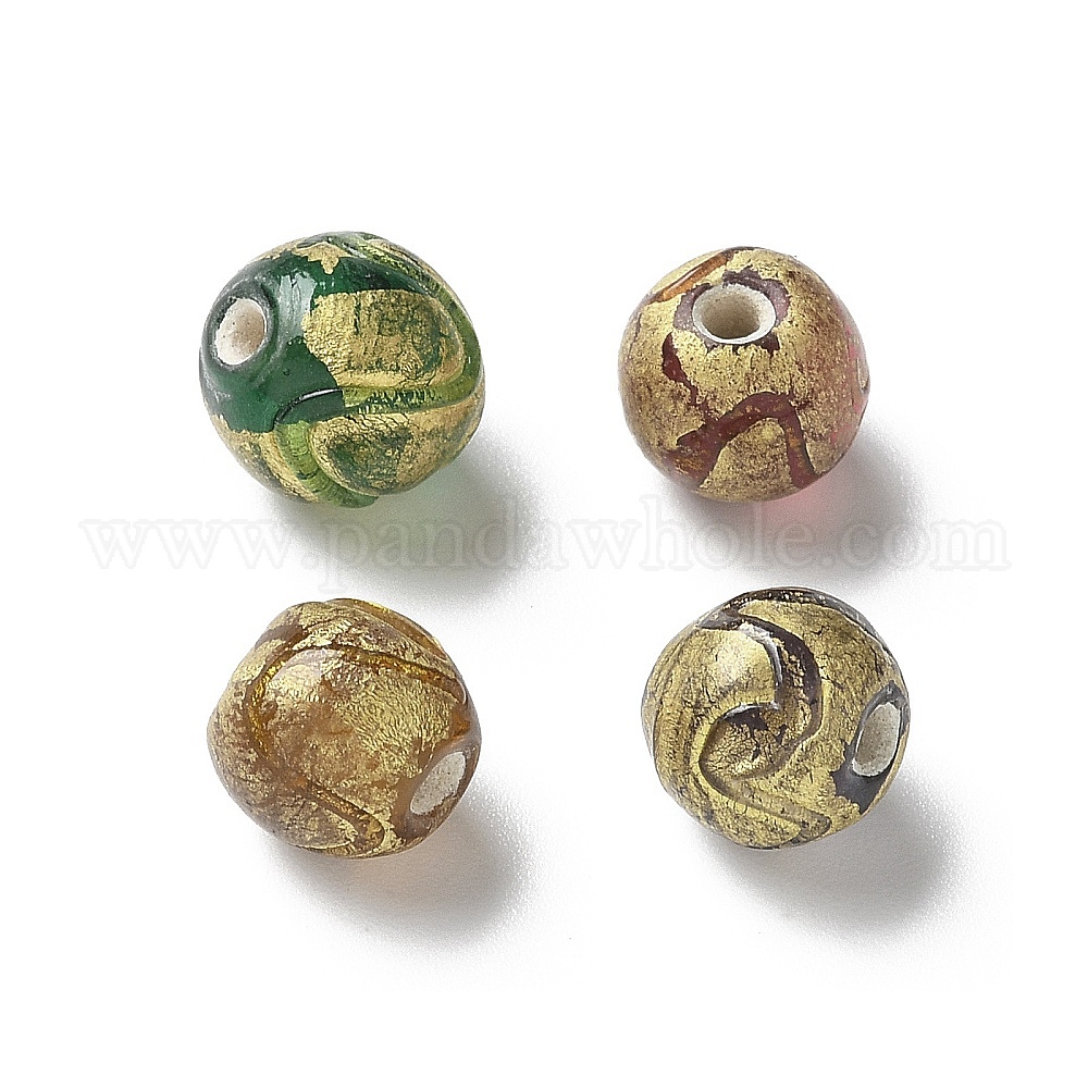 Бусины ручной работы золотой фольги стекла, круглые