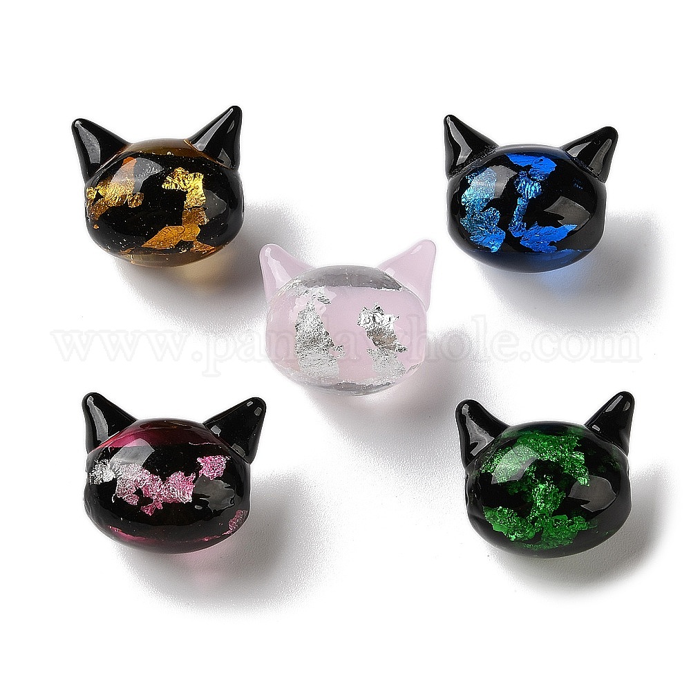 Handmade стеклянные бусины фольги, кошка (03943P)