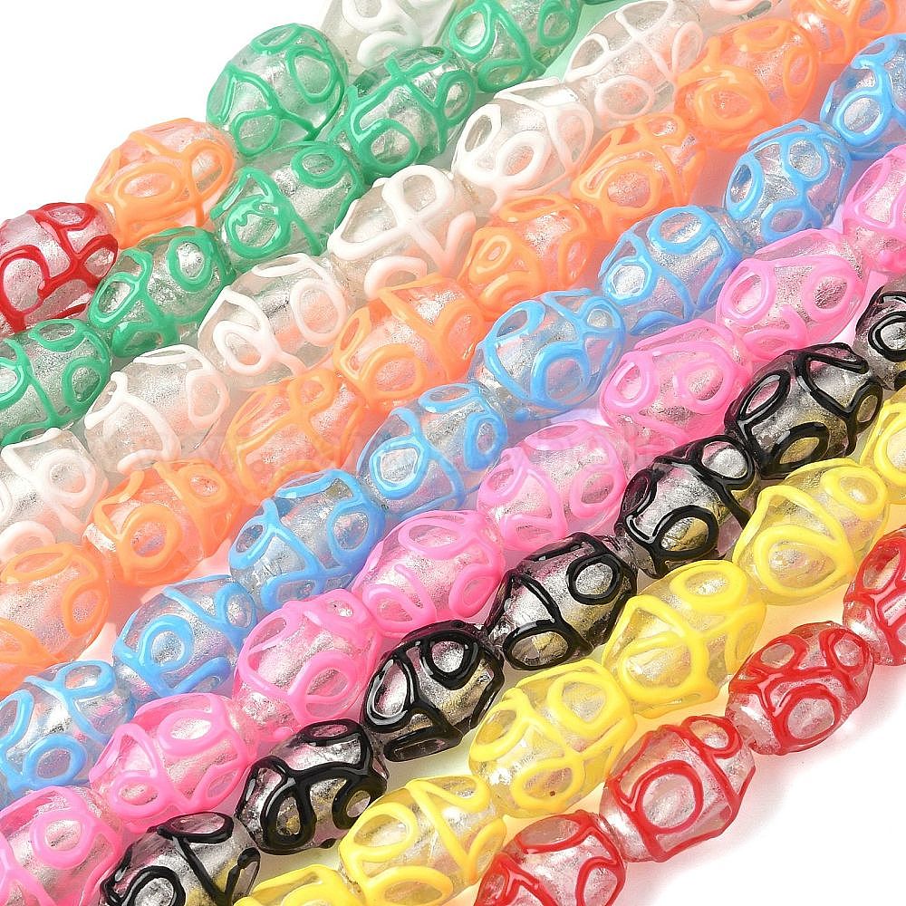 Ручной Щепка фольга стеклянные бусины, с эмалью, баррель