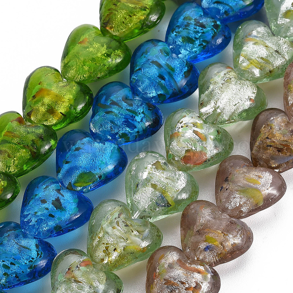 Бусины ручной работы бусины серебряной фольгой, сердце, 21x20x13 мм, отверстие : 2 мм