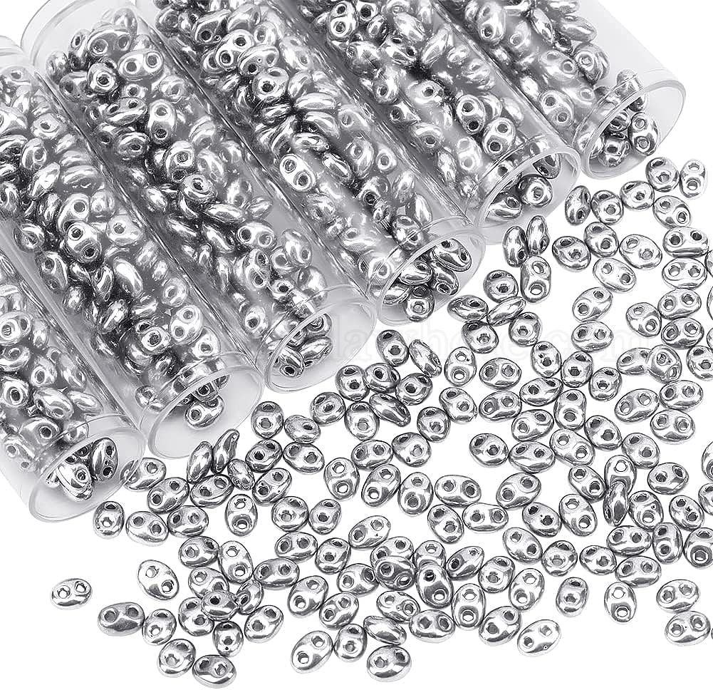 720шт. цвета глянец чешский стеклянный бисер, металлических цветов, 2-луночное, овальные