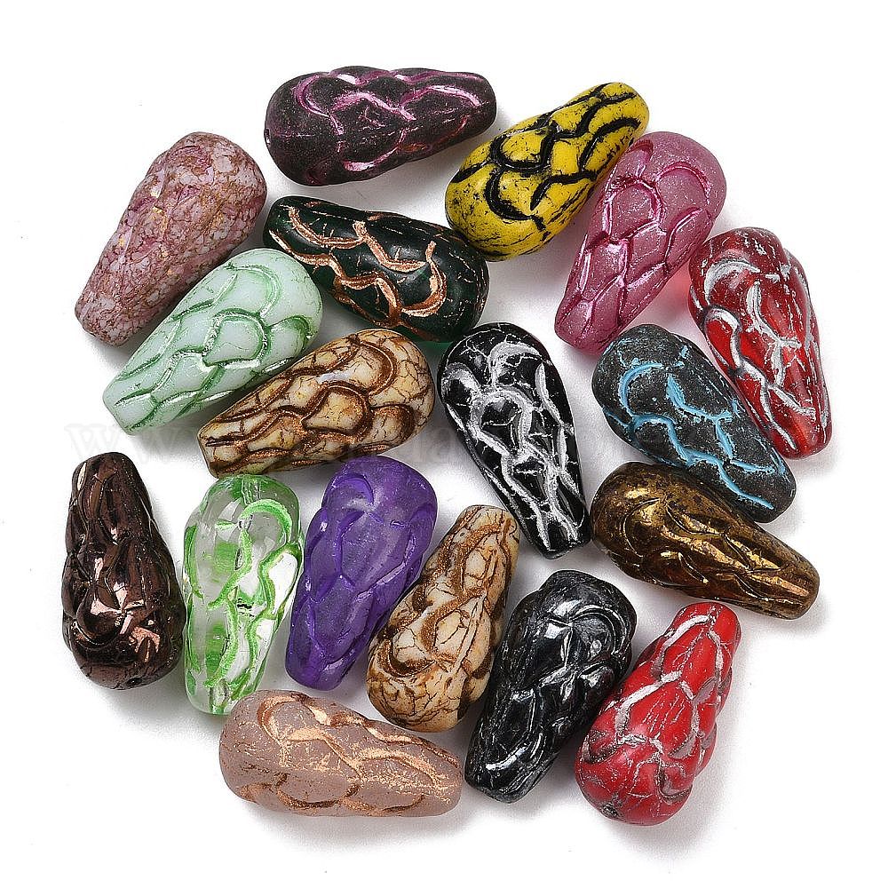 • (52) Непрозрачная лаванда Чешские прессованные стеклянные бусины, капля с чешуей русалки, разноцветные, 25x12.5 мм, отверстие : 1 мм, около 54 шт / упаковка