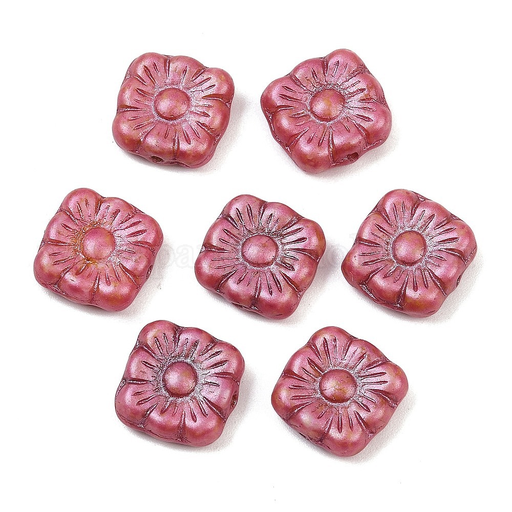 Чешские прессованные стеклянные бусины, площадь с цветочным узором