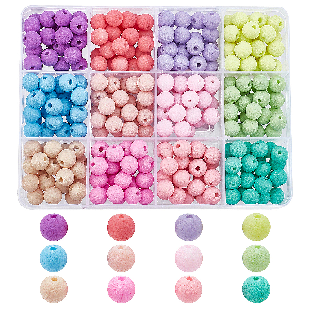 • (52) Непрозрачная лаванда 300 шт. 12 цветные стеклянные бусины, окрашенные распылением, имитация вулканической породы, круглые, разноцветные, 8.5x7.5 мм, отверстие : 1 мм, 25 шт / цвет