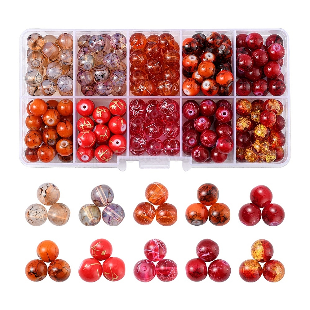 круглые шарики из прозрачного стекла, окрашенного распылением: около 8мм в диаметре, отверстие : 1.3~1.6 мм, около 21~23шт;