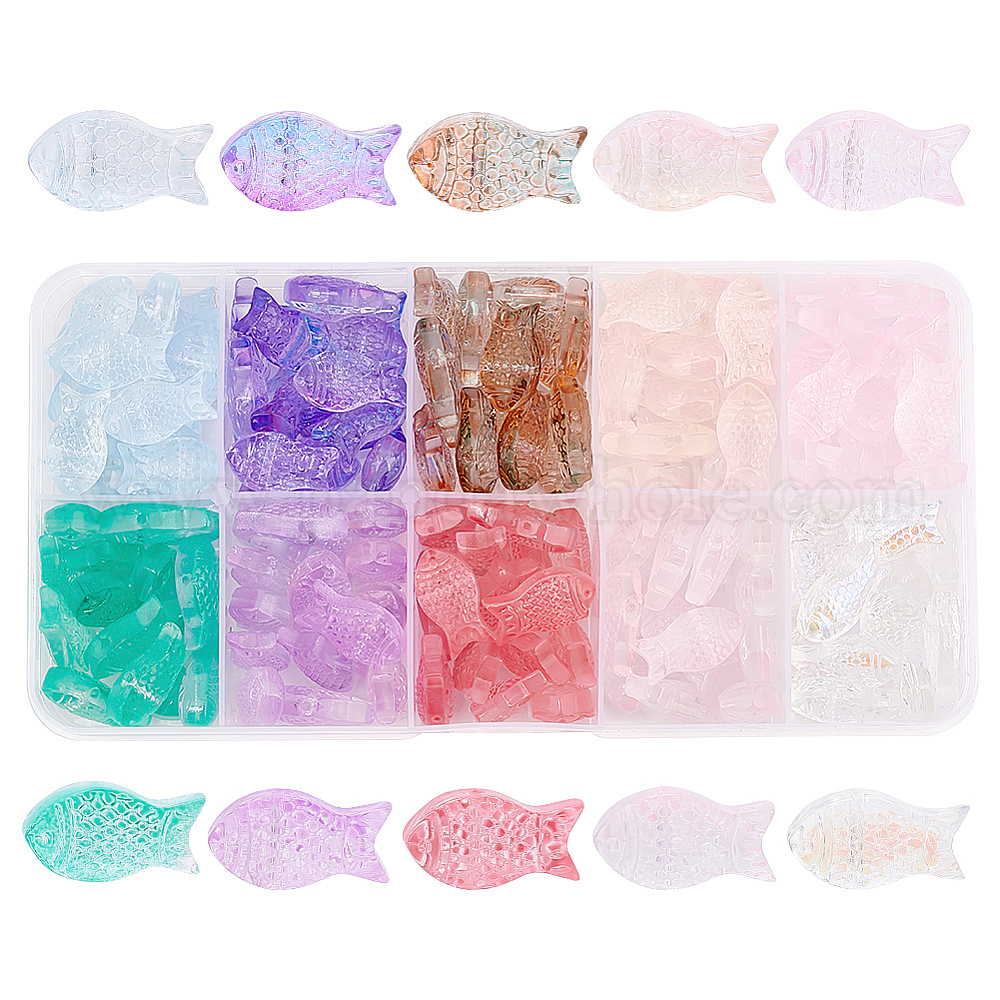 150шт 10 цвета прозрачные окрашенные распылением стеклянные бусины, рыба