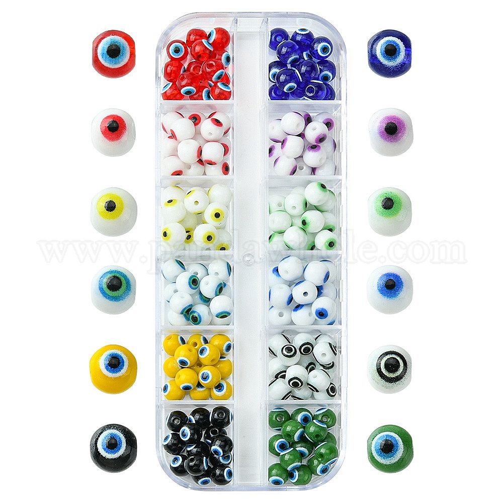 156шт 12 цветные стеклянные бусины, окрашенные запеканием, круглые с сглаза