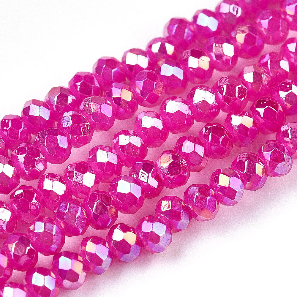 • Фуксиновый Выпечки нарисованных стеклянных бусин прядей, имитация нефрита, граненые, с покрытием AB цвета, рондель, красно-фиолетовые, 2.9~3.3x2.5 мм, отверстие : 0.8 мм, около 135~140 шт / нитка, 32~34 см