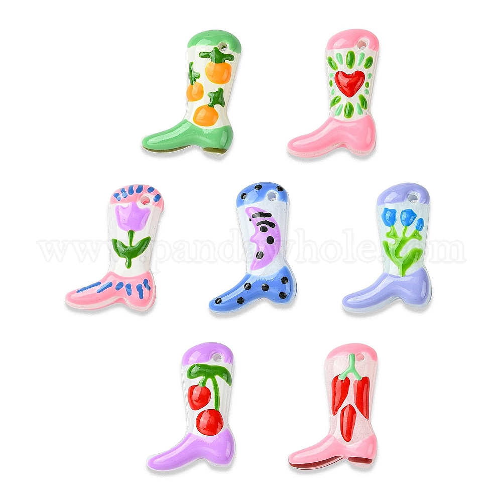• (52) Непрозрачная лаванда 14 шт. 7 цвета окрашенные стеклянные бусины эмалевые бусины, ботинок, разноцветные, 24x17x8~8.5 мм, отверстие : 1.4 мм, 2 шт / цвет