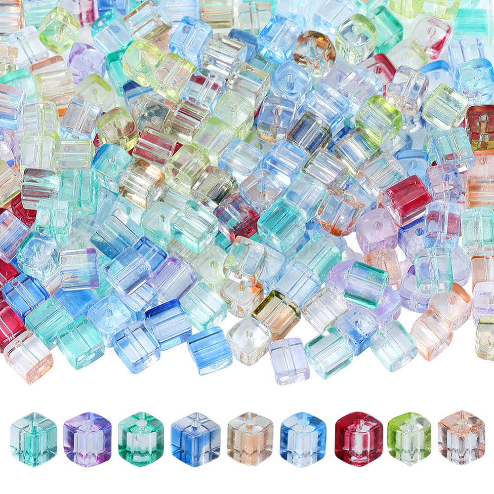 270шт 9 цвета краска для выпечки прозрачные стеклянные бусины, кубические