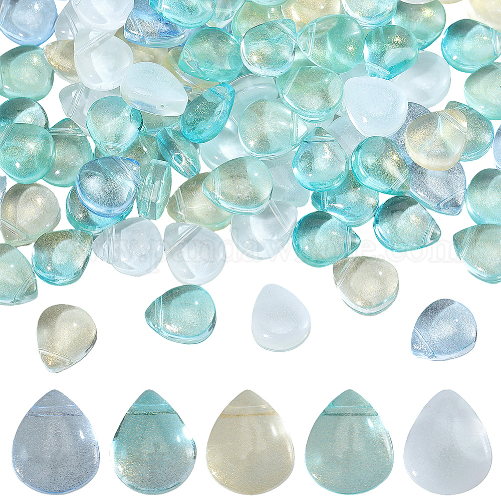 150шт 5 цвета прозрачные окрашенные распылением стеклянные бусины, сверху просверленные бусы, с блеском порошок, слеза (036N2J)