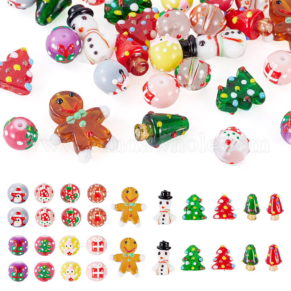28шт. 14 стили: расписные стеклянные бусины на рождественскую тематику, бусины с неровной поверхностью, разнообразные
