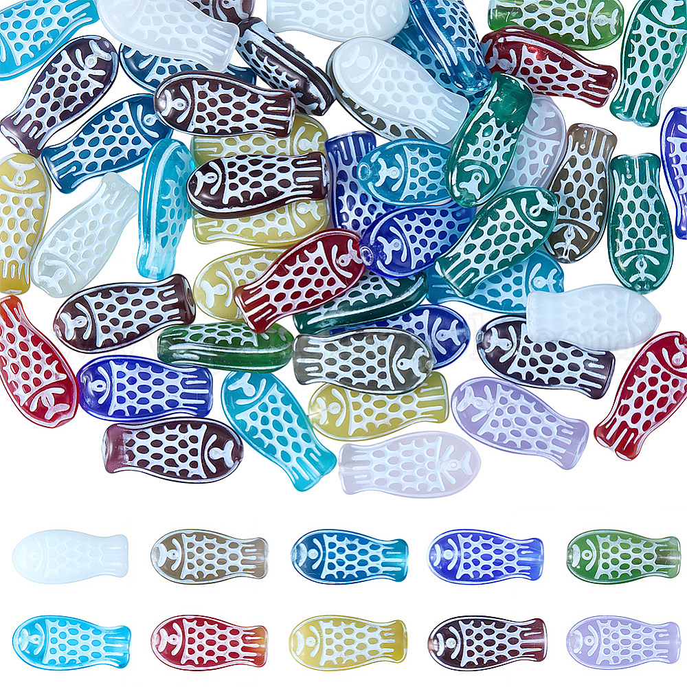 60шт. окрашенные стеклянные бусины, рыба