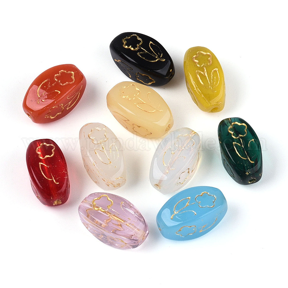 Краска для выпечки и стеклянные бусины, инкрустированные золотым металлом, веретенообразная форма с цветком (03A8FW)