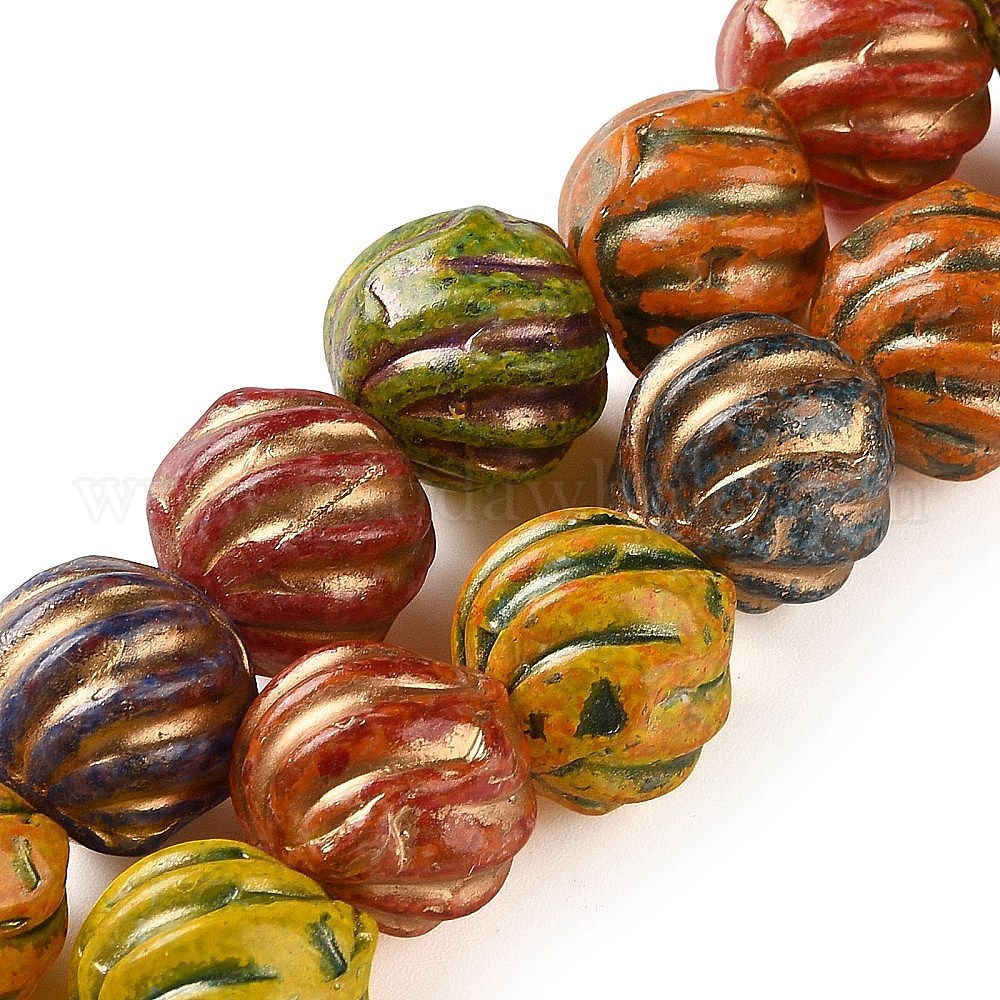 Окрашенные стеклянные бусины , золотой металл обвитыми, Твист круглые