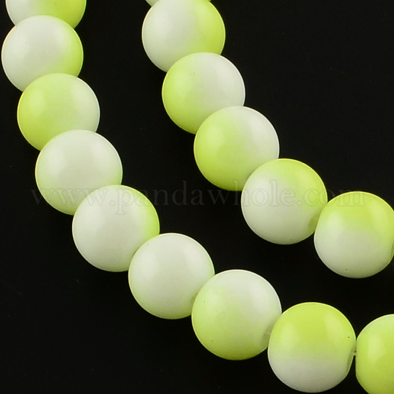 Двухцветные выпечки окрашенные стекла шарик нити, круглые, 10 мм, отверстие : 1.3~1.6 мм, около 82 шт / нитка, 32.2 дюйм
