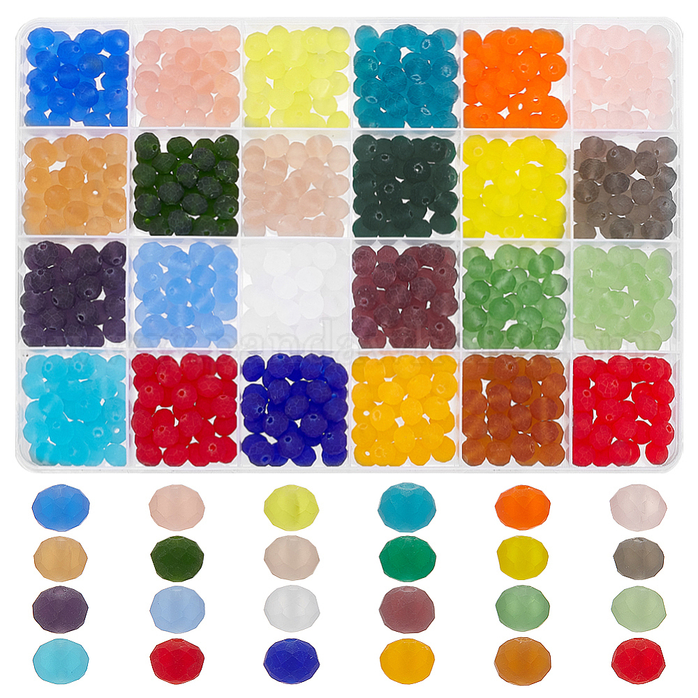720 шт 24 цвета прозрачные стеклянные бусины, граненые, матовые, рондель (02NZKW)