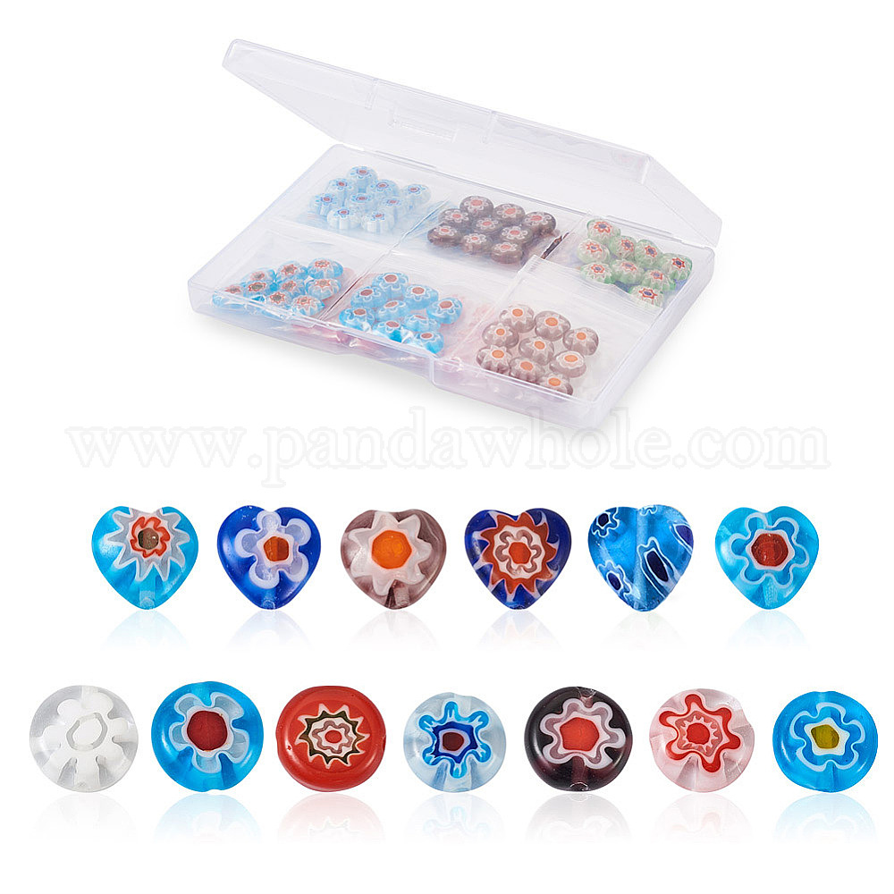 130шт. бусины миллефиори лэмпворк ручной работы, Сердце & плоские круглые
