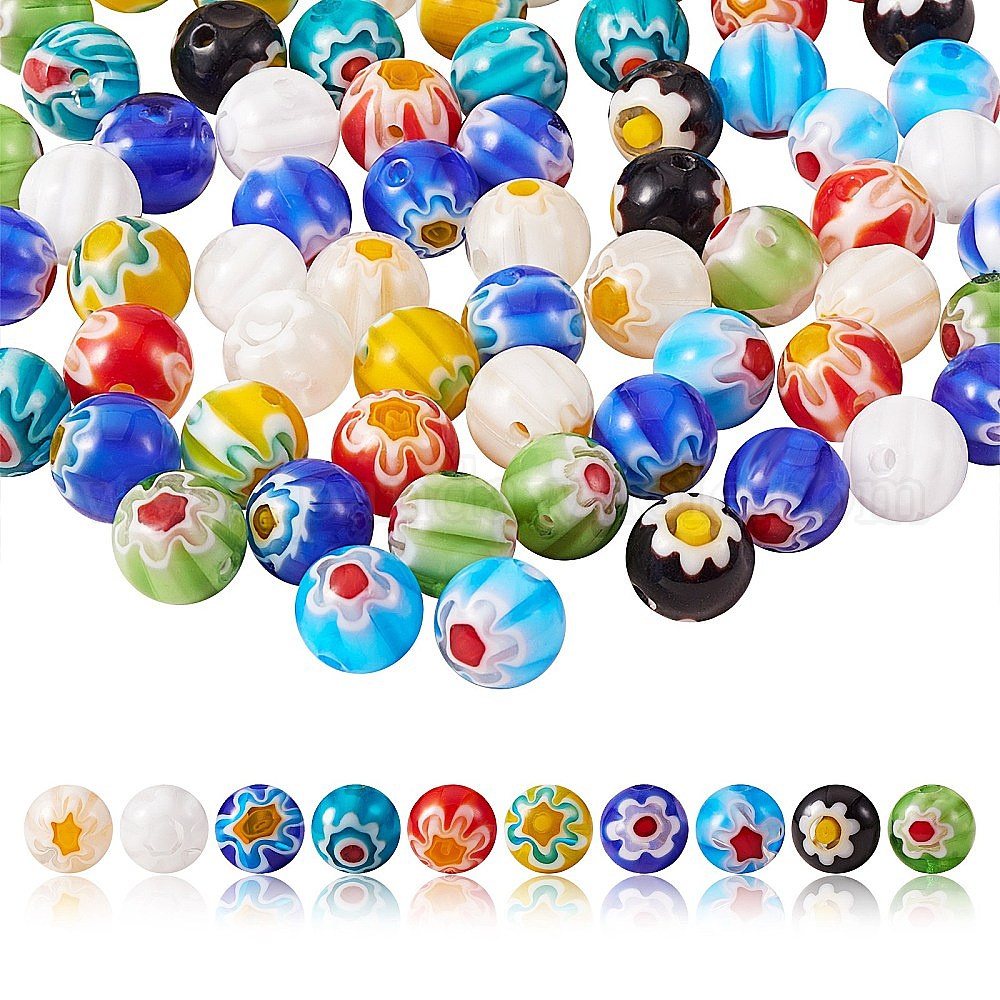100 шт 10 стиль ручной работы бусины лэмпворк, Millefiori стеклянные бусины, круглые
