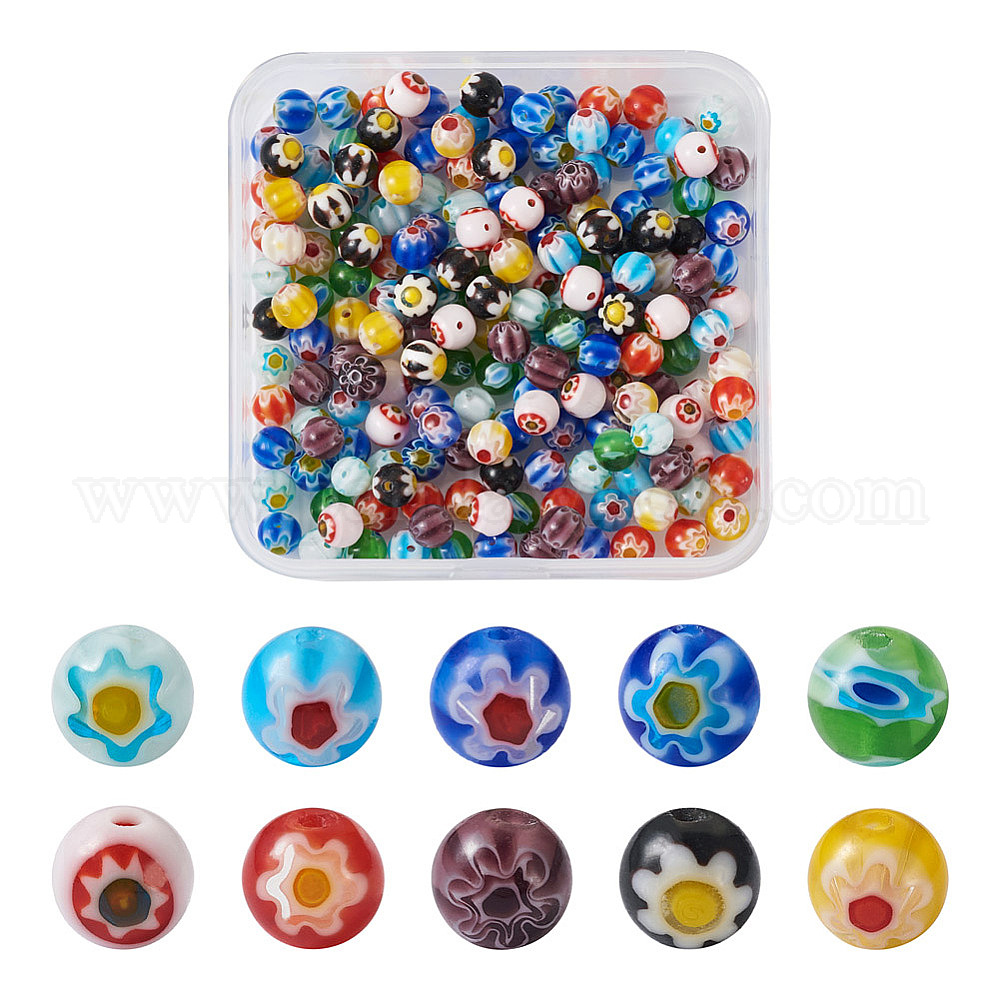 200шт 10 цвета круглые стеклянные бусины миллефиори