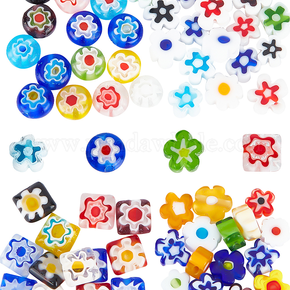 120шт 4 стиль ручной работы стеклянные бусины миллефиори наборы, цветок и квадрат/плоский круглый