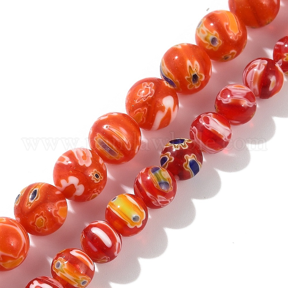 • Оранжево-Красный Handmade millefiori lampwork beads strands, круглые, оранжево-красный, 10x9.5 мм, отверстие : 1 мм, около 38 шт / нитка, 14.37'' (36.5 см)