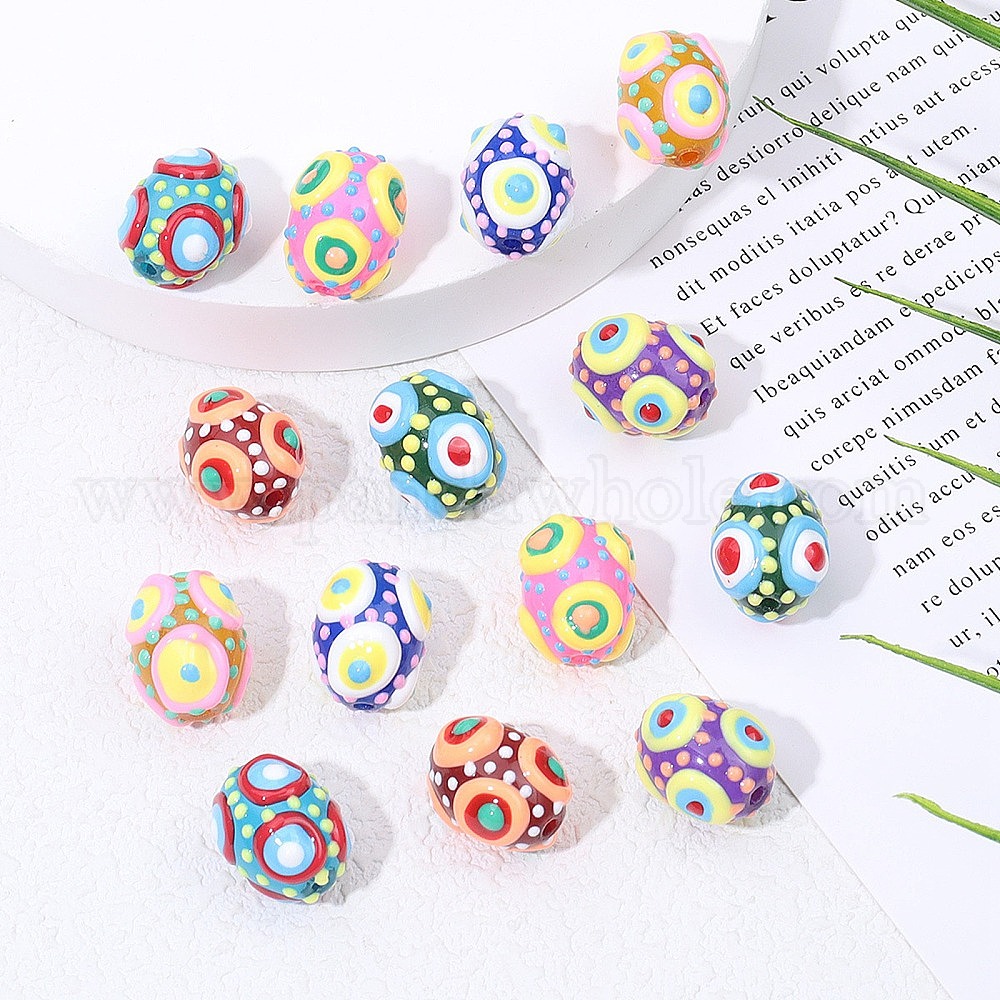 • (52) Непрозрачная лаванда Стеклянные бусины миллефлори, овальные, разноцветные, 16x13~13.5 мм, отверстие : 1.8 мм