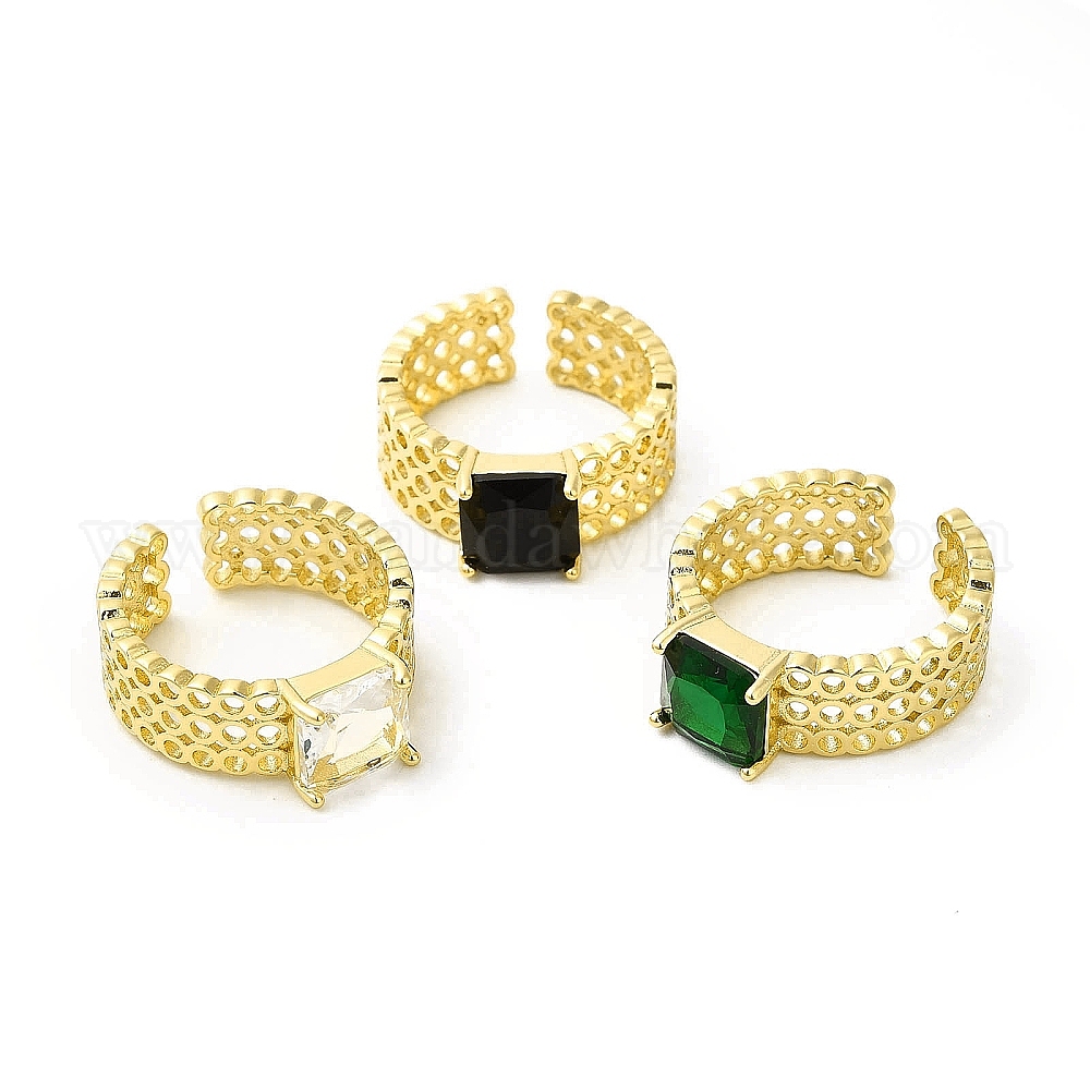 Стеклянная квадратная открытая манжета, полое кольцо из настоящей позолоченной латуни 18k для женщин, без кадмия, без никеля и без свинца
