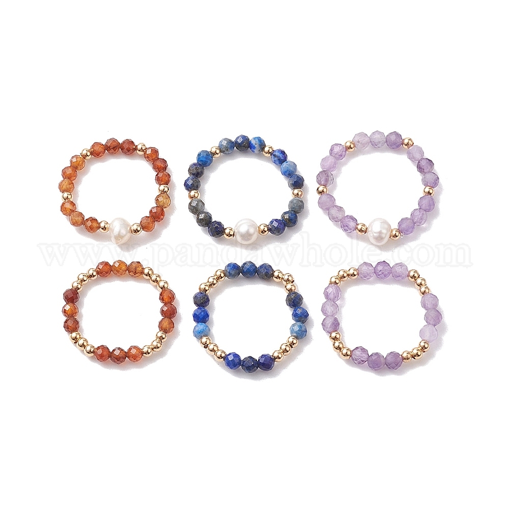 • (52) Непрозрачная лаванда 6 шт. натуральный лазурит/гранат/аметист со стеклянными плетеными кольцами из бисера, разноцветные, внутренний диаметр: 17.5~20 мм, 6 шт / комплект