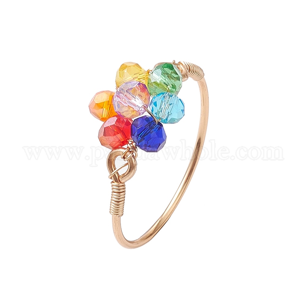 Стеклянные кольца на палец с цветком, женское кольцо из медной проволоки