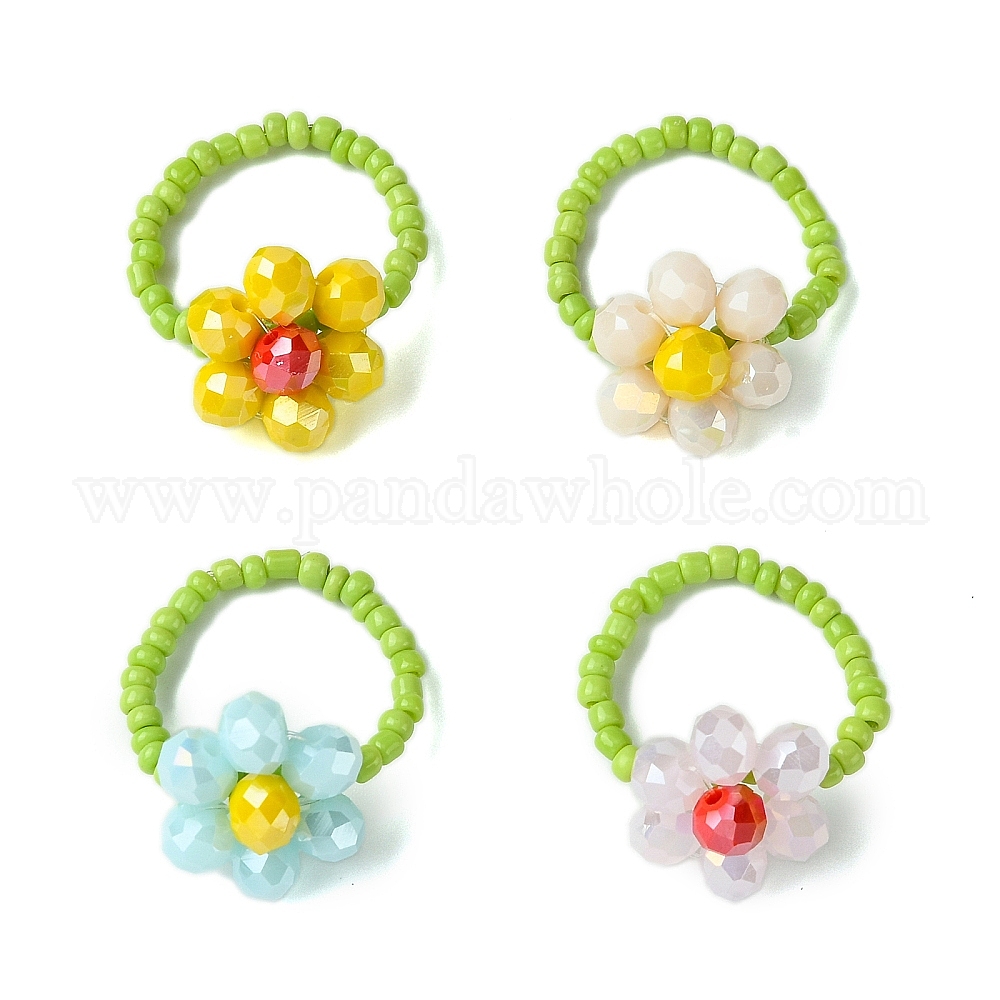 4шт 4 цвета цветочные стеклянные бусины наборы растягивающихся колец для женщин