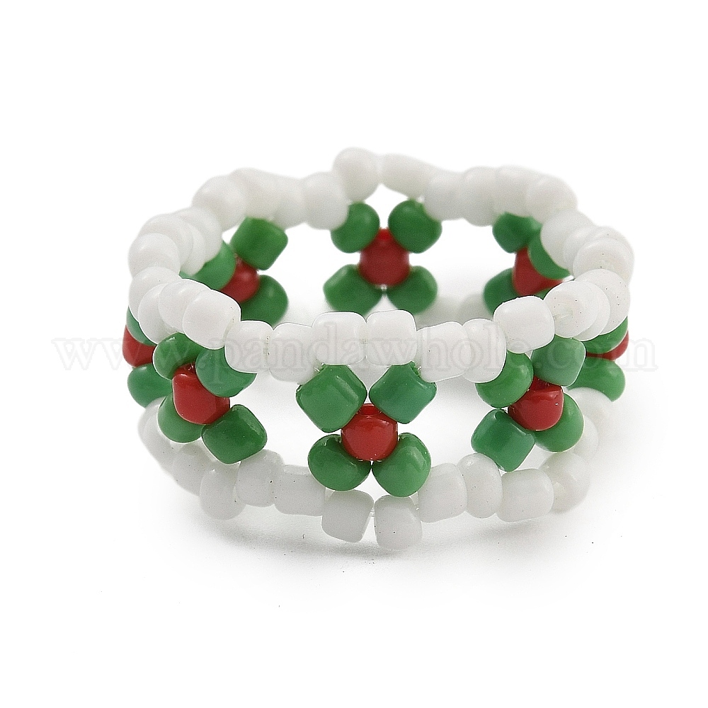 Рождественские тематические стеклянные бусины эластичные кольца для женщин