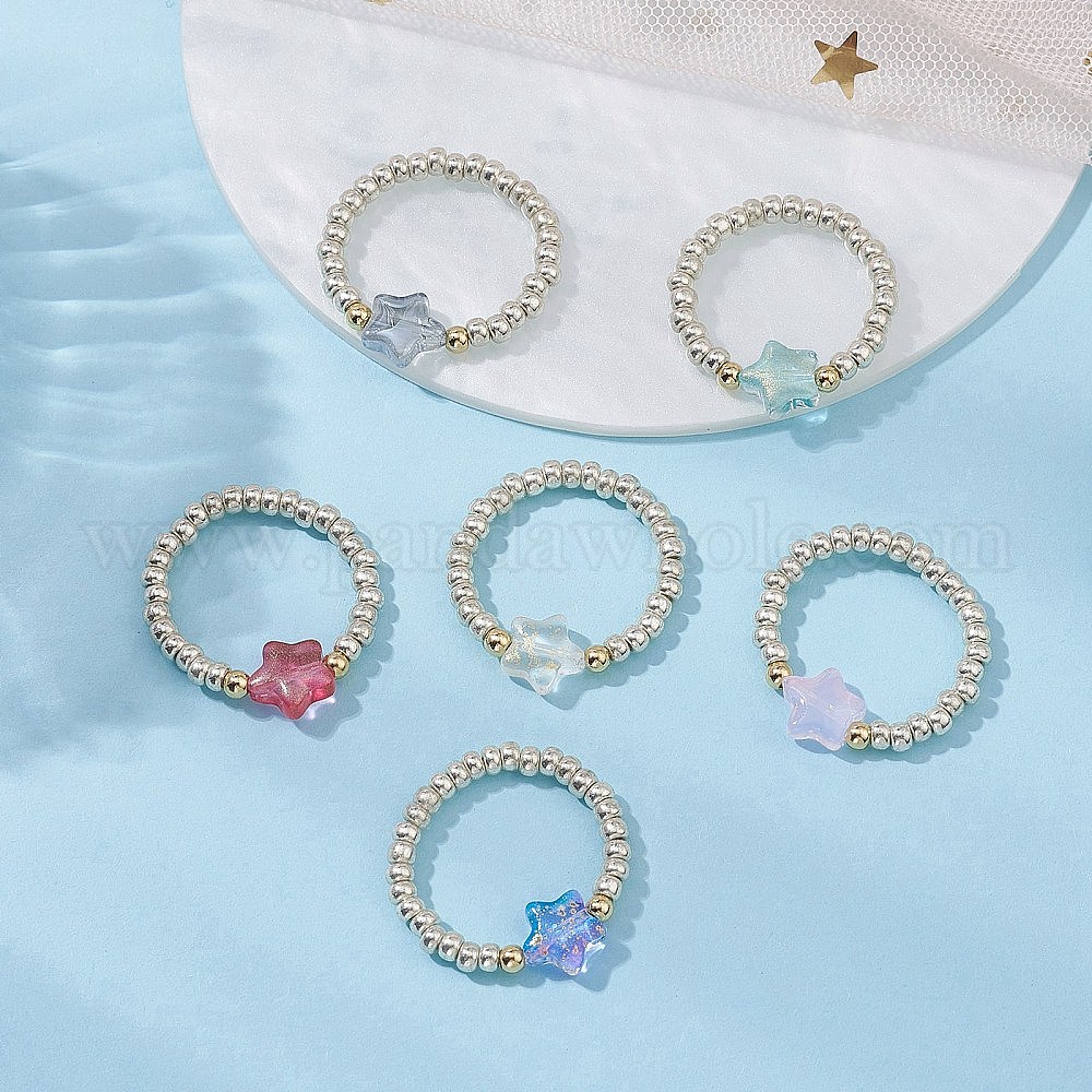 Стеклянные бусинки стрейч-кольца, звезда