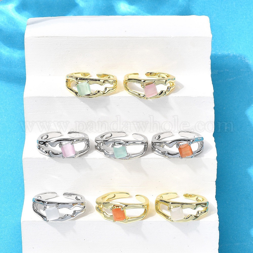 • Белый Квадратные латунные манжеты-кольца «кошачий глаз», без кадмия и без свинца, долговечный, стойки покрытие, платина, белые, 8 мм, внутренний диаметр: регулируемый