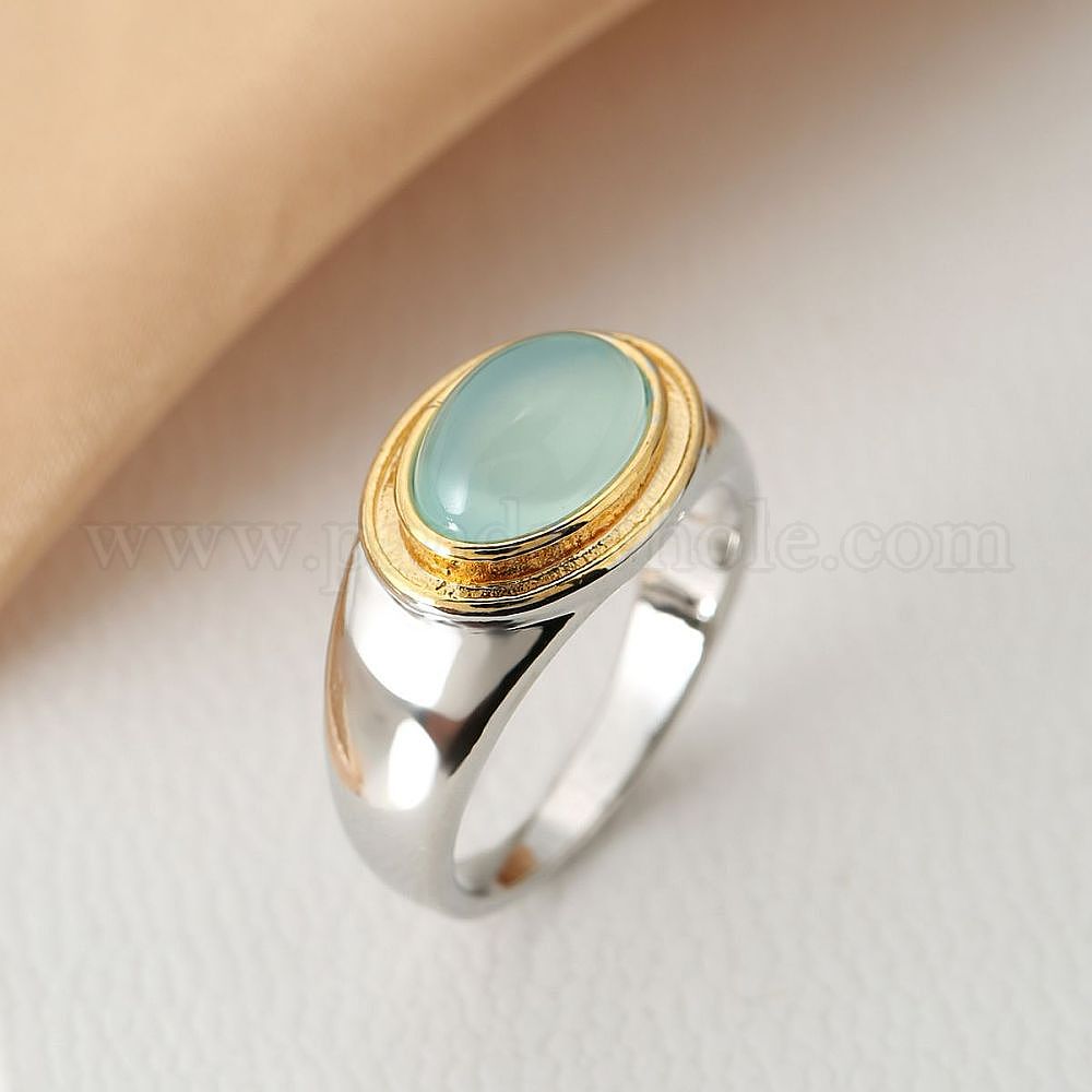 • Платиновый & Золотой Овальные латунные кольца кошачий глаз, платиной и золотом, размер США 9 (18.9 мм)