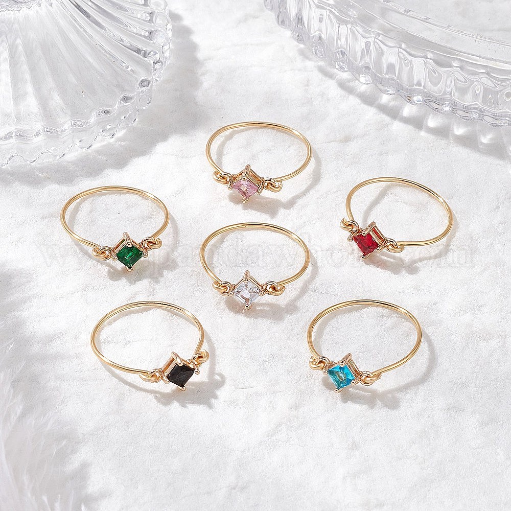 • (52) Непрозрачная лаванда Прозрачные стеклянные кольца для пальцев, с экологически чистой медной проволокой, ромб, разноцветные, размер США 9 (18.9 мм)