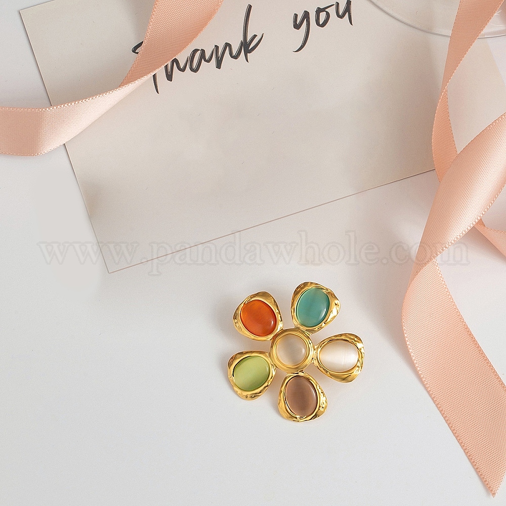 304 женские манжеты из нержавеющей стали с камнями кошачий глаз, цветок