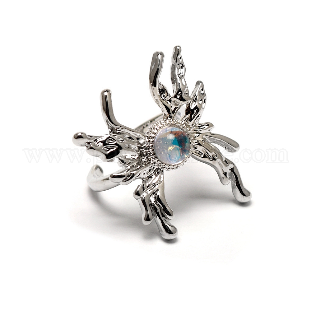 Кольца-манжеты из стекла-бабочки с имитацией лунного камня, открытые кольца из платинового металла для женщин