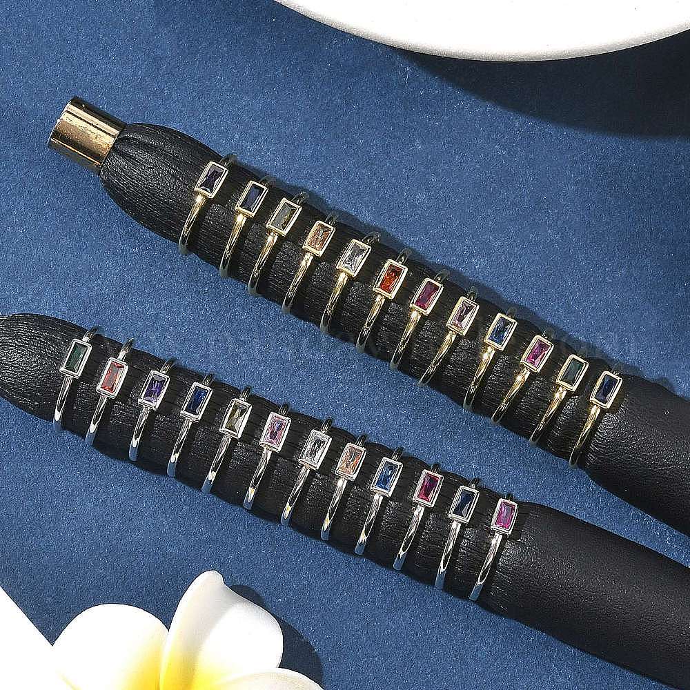 Прямоугольные латунные манжеты со стеклом для женщин, долговечный, стойки покрытие, без свинца и без кадмия, настоящий 18k позолоченный/платиновый